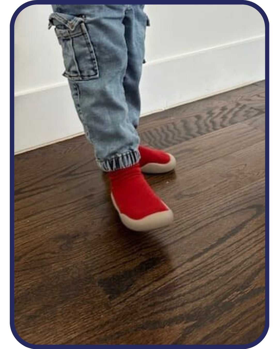 Mi peque solía quitarse cualquier par de zapatos en cuestión de minutos. ¡Con los nuevos zapatos calcetín, ella misma pide ponérselos! Son suaves, se mantienen puestos y corre todo el día sin resbalarse.
