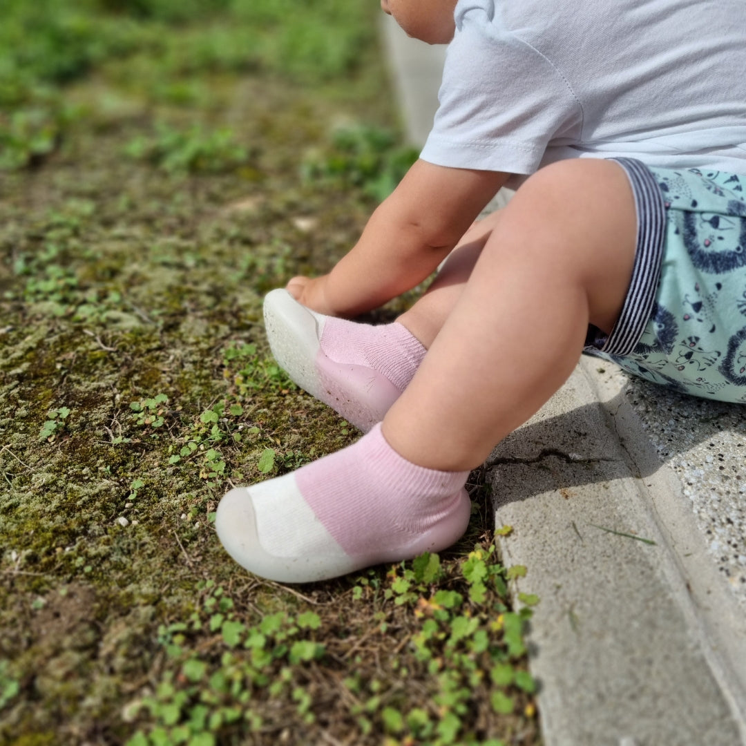 Los Zapatos Calcetín Explorines están hechos para pequeños exploradores curiosos. Ya sea corriendo por la sala o dando pasitos en el jardín, sus pies se mantienen protegidos y cómodos.
